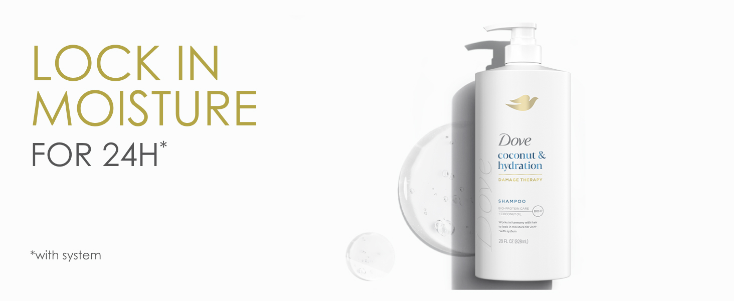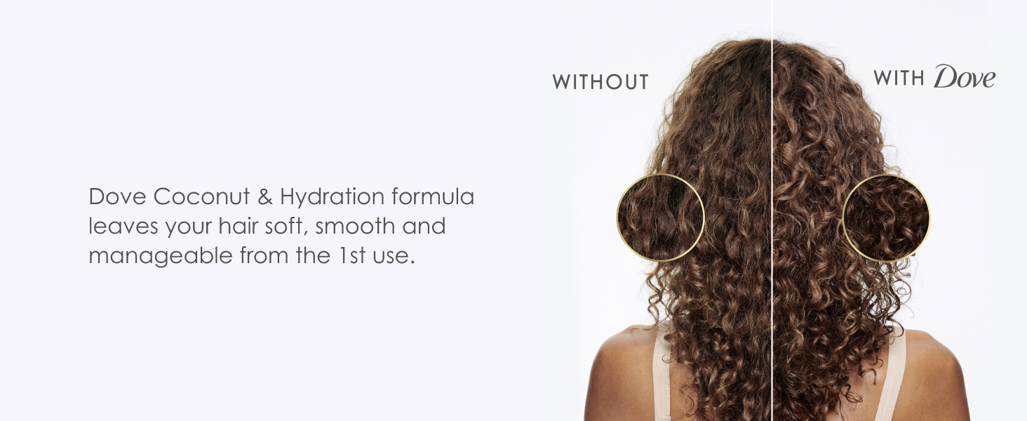 Nourish and rehydrate your hair for ultimate hydration with Dove Coconut & Hydration hair shampoo. This deeply hydrating formula works in harmony with your dry, damaged hair to lock in moisture for 24H*. This shampoo features a delicious coconut scent and turns dry hair soft, smooth, and beautiful again. Dove Coconut & Hydration Shampoo is the first step in our regimen towards moisturized and manageable hair. Pair with Dove Coconut & Hydration Conditioner and enjoy locked in moisture for 24H*. Our Coconut & Hydration range* is enriched with coconut oil which is known to moisturize and smooth hair. It also features Bio-Protein Care technology, designed to regenerate hair strength and refill it with 1 trillion strength protein builders with every wash. Dove Coconut & Hydration Shampoo and Conditioner system is ideal for dry hair that needs extra care to reduce additional breakage. Just apply this Dove Coconut & Hydration Shampoo onto wet hair, lather, and rinse before using the Dove Coconut & Hydration Conditioner for maximum effect. As always, Dove hair products are vegan and PETA-approved, meaning it’s not tested on animals globally. Discover hair freedom and free yourself from the worry of hair damage—embracing a new dawn of hair possibilities now. *with system *shampoo, conditioner/mask & serum