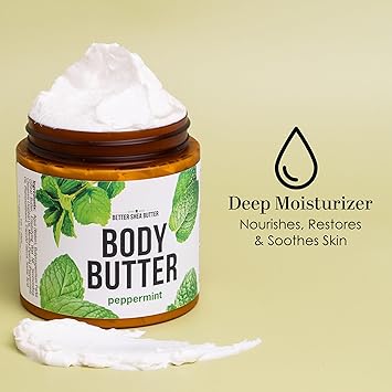 - ZERO ARTIFICIAL FRAGRANCE ALL NATURAL BODY BUTTER - scented with essential oils only (peppermint essential oil), never any artificial scents or perfumes.