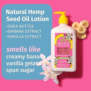Hempz Sugared Banana & Vanilla Blossom Lotion helps provide dramatic skin hydration and nourishment to help improve the overall health and condition of skin. Enriched with 100% pure Natural Hemp Seed Oil, banana extracts, aloe vera, shea butter and our signature Miracle Oil Blend to help refresh, rejuvenate and energize skin leaving it feeling soft, smooth and supple.