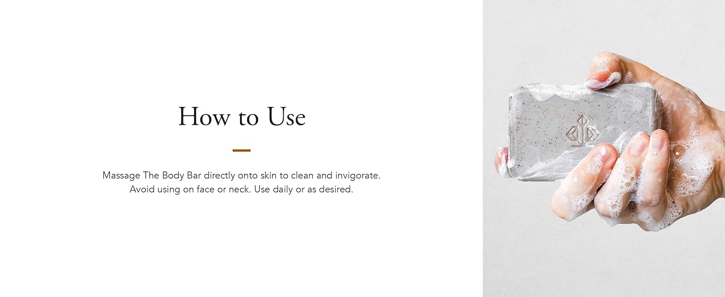 - HOW TO USE: Massage The Body Bar directly onto the skin. Use it daily or as desired, and avoid using on the face or neck. Pair it with The Clean Slate for a shower duo that takes care of the whole body, from head to toe.