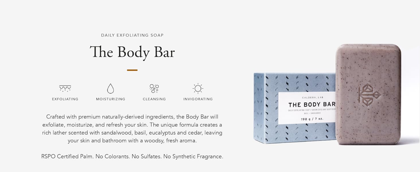 Caldera + Lab The Body Bar Exfoliating Soap- Certified, Vegan, Exfoliating and Organic Bar Soap with Antioxidant Botanicals