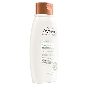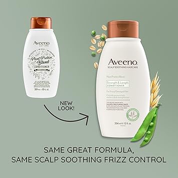 Keep frizzy hair growing strong with Aveeno Plant Protein Blend Conditioner. This strengthening conditioner helps promote a healthy scalp while nourishing and strengthening strands. Great for frizzy, damaged hair, this formula infused with plant protein, vegan keratin and chia seeds helps control frizz while leaving hair soft and manageable. Part of the Aveeno Scalp Soothing Haircare Collection, this conditioner contains oat as the first ingredient, which is known for its soothing and moisturizing properties. All Aveeno hair care products are made with balanced blends of wholesome ingredients and are free from sulfates, parabens and dyes. Aveeno is known for bringing the soothing and healing properties of nature to skin care and now offers nourishing care for your scalp and hair. We’re not only mindful of what goes into our formulations, but also of our impact on the world around us. To use: After shampooing, apply conditioner generously to hair, working through to ends. Wait 3 - 5 minutes, and then rinse hair thoroughly. Start with Aveeno Plant Protein Blend Shampoo for the optimal hair moisturizing routine.