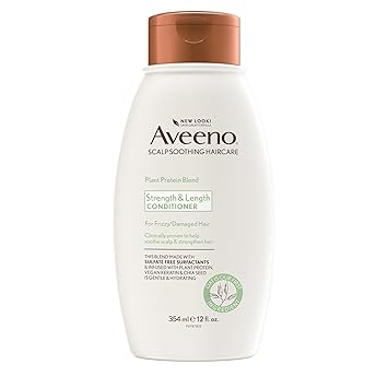 Aveeno Strength & Length Plant Protein Blend Conditioner, Vegan Formula for Strong Healthy Looking Hair, White, Unscented, 12 Fl Oz