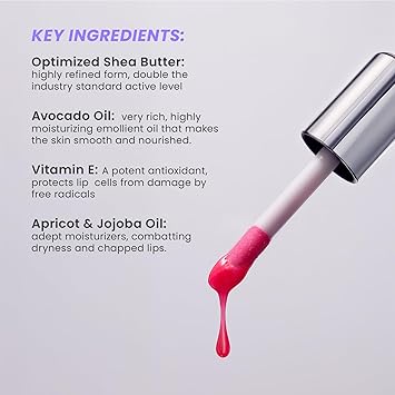 - Bid Farewell to Dry, Chapped Lips - Say goodbye to dryness and hello to deep hydration with our ultra-nourishing lip oil for women. Infused with highly refined shea butter, avocado oil, jojoba oil, vitamin E, and apricot oil, it replenishes moisture, soothes dry lips, and brings out your lips’ natural softness. Keep them smooth, supple, and irresistibly hydrated—day in and day out.