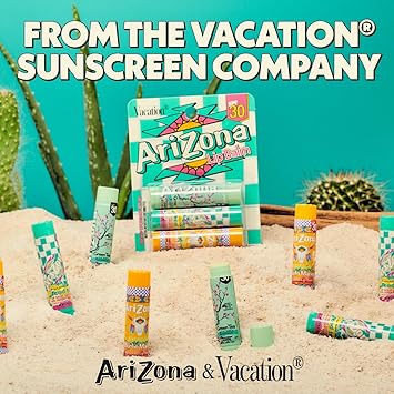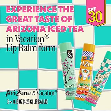 AriZona Iced Tea SPF 30 Lip Balms 3-Pack by Vacation Sunscreen, Hydrating Lip Sunscreen Chapstick, Water Resistant Vegan Sunscreen Lip Balm, 3 Iconic Flavors, Limited Edition SPF Chapstick (Pack of 3)