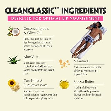- LIGHTWEIGHT, TRANSPARENT SHEEN - Our sunscreen for lips goes on clear on all skin tones and delivers an enviable, subtle sheen. Made with Coconut Oil, Cocoa Butter, Aloe Vera and Vitamin E, our lip balm sunscreen leaves your lips hydrated, moisturized, and deeply nourished. A premium lip balm for severely chapped lips.