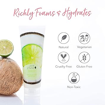 100% PURE Coconut Lime Shower Gel Natural Foaming & Hydrating Body Wash - Deeply Moisturizing Gentle Soap Cleanser for All Skin Types, Even Sensitive - Gluten-Free - 8 Fl Oz