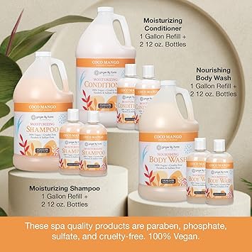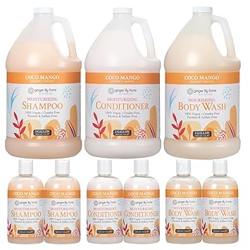 - All-In-One Hospitality Kit: Each Ginger Lily Farms Hospitality Kit contains everything needed to outfit two showers, including two 12 oz. bottles and one gallon each of Coco Mango Moisturizing Shampoo, Moisturizing Conditioner and Nourishing Body Wash.