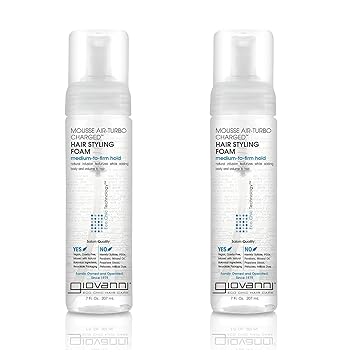 GIOVANNI Mousse Air-Turbo Charged, Hair Styling Foam - Lightweight for Natural Curls, Medium to Firm Hold, Add Texture & Shine, Curly Hair Products, No Parabens, Color Safe - 7 Fl Oz (Pack of 2)