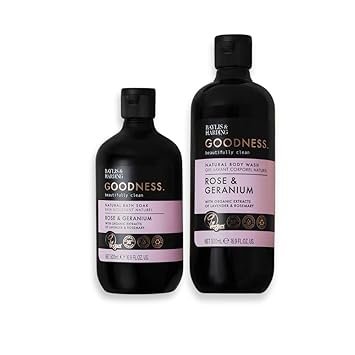 Baylis & Harding Goodness Body Wash, Rose & Geranium Scent. Natural Body Wash & Bath Soak Set, 98% Naturally Derived, Dermatologist Approved, Vegan.