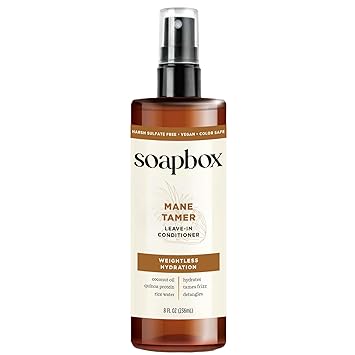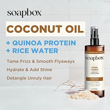 Soapbox Mane Tamer, Leave-In Conditioner Spray to Tame Frizz, Smooth Fly Aways, Hydrate, Add Shine & Detangle Dry, Damaged Hair, Paraben Free, Vegan (8oz)