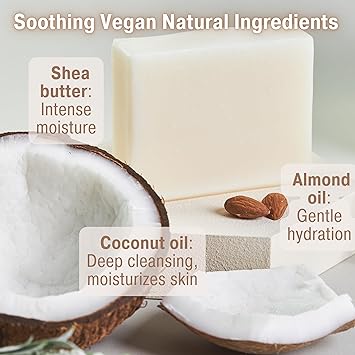 - MOISTURIZING SOAP FOR EXTRA DRY SKIN - Experience the power of nature with our moisturizing body soap that doubles as a moisturizing hand soap for extra dry skin. Crafted with raw shea butter to create a rich shea soap, along with sweet almond and castor oils, it’s the best soap for itchy skin and works as a gentle hand soap for sensitive skin and face. Free of synthetic fragrances, colorants, sulfates, parabens, and foam additives that typically dry out your skin, it offers a clean, nourishing cleanse to leave your skin feeling soft, hydrated, and refreshed.