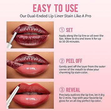 - Long Lasting Lip Stain: The peel off lip liner stain is made of ultra-pigmented formula that's water-resistant, transfer-proof; Peel off lip stain keeps lips in line from morning till evening; Lip liner stain is a time saver on your makeup routine