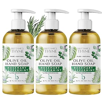 Brittanie’s Pure Castile Liquid Soap Refill, Rosemary Peppermint, 16 Ounce 3 Pack | Dish Soap, Hair & Body, Home, Gentle and Pure, Made with Natural Luxurious Oils, Vegan & Gluten Free Non-GMO