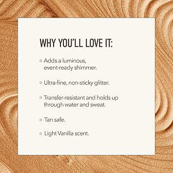 - NON-STICKY BODY GLITTER OIL ALTERNATIVE - We purposely formulated this body shimmer gel without mineral oil, so it is not sticky and dries fast. If there is ever transfer on your clothes, the product is easily washable and does not stain clothing permanently. You’ll love to have this highlighter on your skin all the time with its sweet vanilla scent!