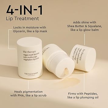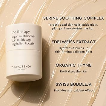 The Face Shop The Therapy Vegan Lip Butter, Moisturizing Lip Balm, Shea Butter & Sunflower Oil & Peptide, Lip Sleeping Mask for Sensitive Skin & Dry Cracked Lips, For Kids & Adults, Korean Skin Care