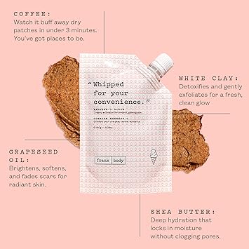 frank body Express-O Coffee Scrub | Smooths, Exfoliates & Fades Marks | Coffee, Shea Butter, Grapeseed Oil & White Clay | Vegan & Cruelty Free | 150g / 5.07 oz