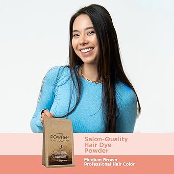 - Powdered Hair Dye Kit; Permanent Medium Brown Hair Dye For Gray Hair Coverage And Vibrant Color; Pre-Blended Single Application Dye For Long Lasting Color