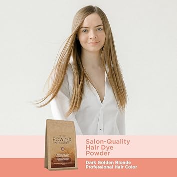 One N' Only Powder Hair Color Kit, Dark Golden Blonde, Permanent Color in Single Application, 100% Gray Hair Coverage without Lift, Just Add Water - No Developer Needed, Vegan and Cruelty Free