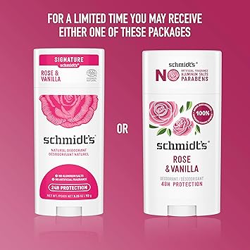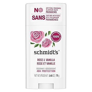 Really Works. Schmidt’s Rose & Vanilla— Formulated with certified 100% natural origin ingredients, this deodorant for women and men is made without aluminum. It’s also certified vegan by Vegan Action and cruelty-free by Leaping Bunny. Our women's and men’s deodorants are naturally enriched with magnesium to help neutralize odor and keep you fresh with 24-hour odor protection that’s gentle on skin. Schmidt’s offers some of the best smelling deodorants for men and women and is made with plant-based oils and butters like coconut oil, jojoba seed oil, and shea moisture butter, as well as vitamin E. Luxurious, long-lasting scents made with 100% natural origin fragrance are never synthetic, always made with plant isolates and essential oils like tea tree oil, jasmine oil, and lavender oil. All our Schmidt’s vegan deodorant sticks require only a small amount for overall effectiveness. To use, hold the deodorant briefly to skin to soften on contact with your body heat. Gently apply 1-2 swipes to dry, clean underarms to keep you feeling fresh all day. This aluminum free deodorant for men and women uses a non-greasy/non-sticky formula that is easily absorbed. Do not apply to irritated, damaged, or freshly shaved skin.
