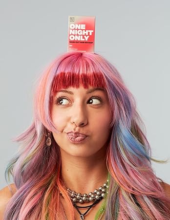 One Night Only is an accessible, easy-to-use, single-use, wash-out hair makeup formula that works with all hair types, textures, and colors to help you dive into vivid color without the commitment. Experiment with streaks, color blocking, dip dye, or a create-your-own color, switching it up by the day like you would with your makeup or your clothes.