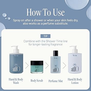 ANILLO Shower Time Parfum Mist - Hydrating & Long Lasting Korean Hair and Body Mist Perfume with Blue Agave, Hyaluronic Acid & Blue Herb Complex - Vegan, After Shower Spray for Men & Women 3.38 fl oz