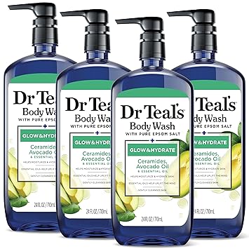 Dr Teal's Teal's Body Wash with Pure Epsom Salt, Glow & Hydrate with Avocado, 24 fl oz (Pack of 4)