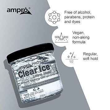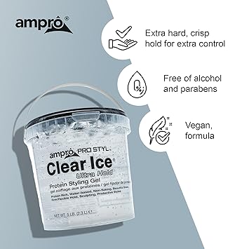 AmPro Pro Styl Clear Ice Styling Gel - Protects and Strengthens Your Strands - Non-Flaking, Alcohol Free, Vegan Formula - Flexible, Touchable Hold for All Hair Types - 80 oz