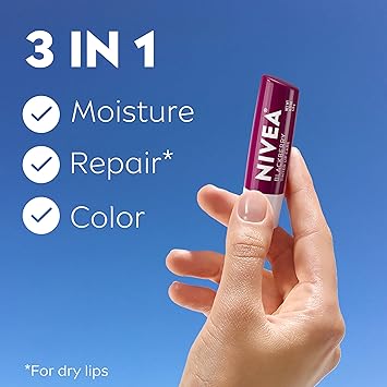NIVEA Blackberry Lip Care, Tinted Lip Balm with Shea Butter, Nourishing Oils and Vitamin C & E, 3-in-1 Moisture, Repair (for Dry Lips) and Color, 0.17 Oz Stick