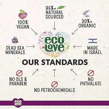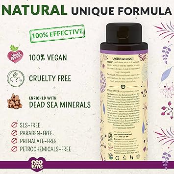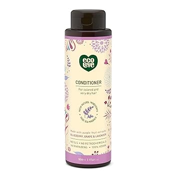 - NATURAL & ORGANIC INGREDIENTS: ecoLove Purple Collection Conditioner is free from SLS, parabens and petrochemicals. 95% nature-derived ingredients (30% organic). Enriched with essential oils, organic herbs & plant extracts and 26 Dead Sea minerals. Relaxing lavender scent