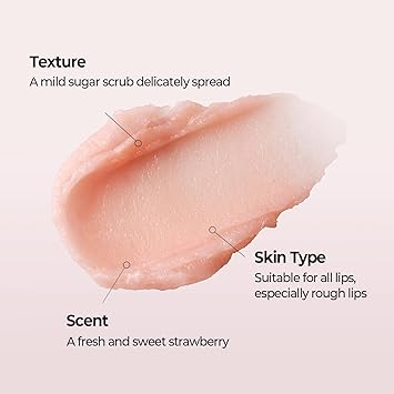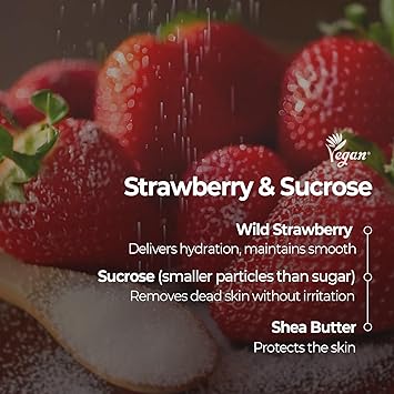This lip scrub does more than just exfoliate—it deeply hydrates and conditions, ensuring your lips stay smooth and supple. The fine sugar granules effectively remove dead skin, while wild strawberry extract delivers long-lasting moisture. Designed to protect the delicate lip barrier, it keeps your lips soft, plump, and perfectly prepped for balm or lipstick.