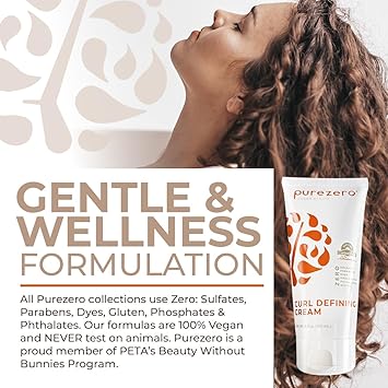 Purezero Curl Cream, Enhances Curl Definition, Moisturizes and Hydrates, Reduces Frizz, Reduces Breakage, Zero Sulfates, Parabens, Dyes,100% Vegan & Cruelty Free (6oz, 2 Pack)