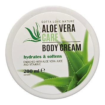Aloe Vera Body Cream With Vitamin E Hydrates and Softens The Skin Vegan, 200 ml / 6,76 Oz
