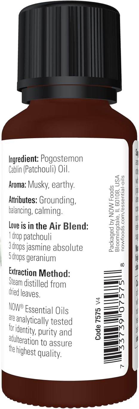 NOW Foods Essential Oils, Patchouli Oil, Earthy Aromatherapy Scent, Steam Distilled, 100% Pure, Vegan, Child Resistant Cap, 1-Ounce