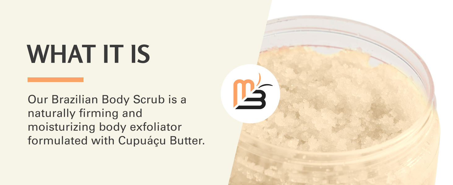 - Moisturizing Vegan Butter: Our new Brazilian Body Scrub is made to help deeply moisturize your skin. We've used Cupuacu Butter as its primary ingredient, which helps gently polish & smoothen the skin with a rejuvenating creaminess most bath scrubs lack.