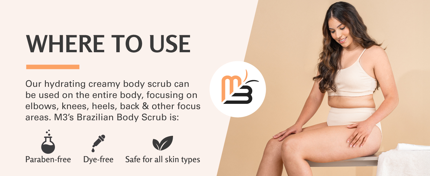 - Derived from Brazil's Creamy Hydrating Balm: Our luxurious exfoliating scrub leaves your skin feeling refreshed & visibly nourished! M3's body scrub helps reduce the appearance of scars & stretch marks without harsh ingredients.