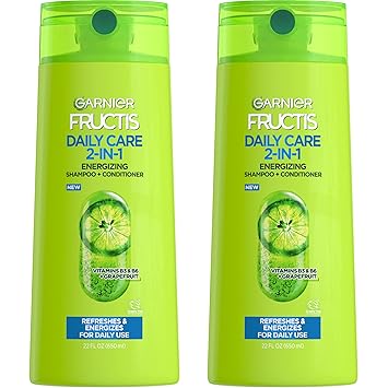 Hair lacking energy? Paraben-free Fructis Daily Care 2-in-1 Shampoo and Conditioner with Grapefruit refreshes and energizes hair for stronger-looking hair with touchable softness. Gentle enough for everyday use. Formulas made with Active Fruit Protein, an exclusive combination of citrus protein, Vitamins B3 and B6, fruit and plant-derived extracts and strengthening conditioners for healthier, stronger hair. Massage Garnier Fructis Daily Care 2-in-1 Shampoo and Conditioner onto wet hair, lather and rinse thoroughly. Garnier is commited to greener beauty with nature inspired formulas, recycled packaging and produced in a facility powered by 45% renewable energy