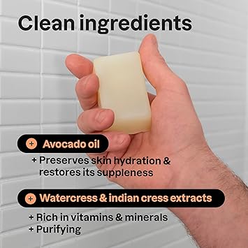- 99% NATURAL ORIGIN: This bar soap for men is made with 99% natural origin ingredients, including Indian cress and watercress for their revitalizing properties. Petrolatum-free, mineral oil-free, and SLS-free formula.
