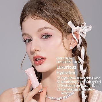 Flower Knows Swan Ballet Shine Lipstick,Hydrating Solid Lip Gloss,Moisturizing Red Tinted Lip Balm-Long Lasting Lip Gloss in Balm for Girls&Women,Vegan & Cruelty-Free(B07 Ballet Dream)