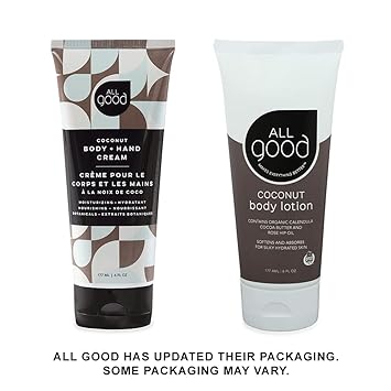 All Good Hand & Body Lotion w/Essential Oils - Moisturizing Organic Lotion w/Calendula, Cocoa Butter, Coconut & Rose Hip Oil - Non GMO - Vegan - 6 oz (Coconut)