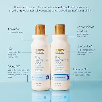 Raw Sugar Shampoo and Conditioner Set, The Sensitive One Hair Care Duo, 18 Fl Oz Each, Gently Cleanses, Soothes & Hydrates with Calendula & Aloe, No Fragrance, Sulfates & Parabens, Vegan