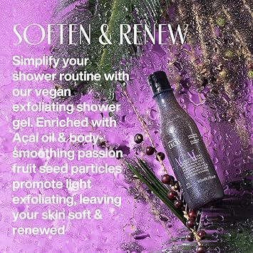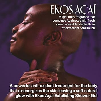 natura - Ekos Açaí Revitalizing Exfoliating Shower Gel - Natural Exfoliants - Removes Impurities - Body Wash - Vegan Skin Care - Brazilian Beauty Secrets - Self Care & Body Care - 6.2 fl oz (185ml)