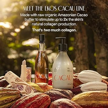 - Deeply Hydrated, Healthier Lips - Powered by Amazonian Cacau Experience long-lasting hydration and restored softness with Natura Ekos Cacau Lip Balm. Infused with raw, organic Amazonian Cacau butter, this balm stimulates up to twice the collagen production, helping to replenish dry, damaged lips while reinforcing your natural lip barrier.