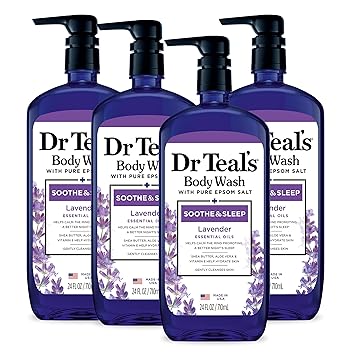Dr Teal's Body Wash with Pure Epsom Salt, Soothe & Sleep with Lavender, 24 fl oz (Pack of 4)