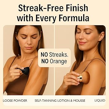 - ใ๐ ๐ฅ๐๐ฐ๐ฅ๐๐ฌ๐ฌ, ๐๐ญ๐ซ๐๐๐ค-๐ ๐ซ๐๐ ๐๐๐ง๐ง๐ข๐ง๐ - ๐๐จ๐ซ๐ค๐ฌ ๐ฐ๐ข๐ญ๐ก ๐๐ฅ๐ฅ ๐ ๐จ๐ซ๐ฆ๐ฎ๐ฅ๐๐ฌใ- Say goodbye to patchy tans. The densely packed, tapered synthetic bristles glide over skin to blend mousse, lotion, foam, or water-based self tanners evenlyโno streaks, no orange spots. A must-have for both beginners and tanning pros.