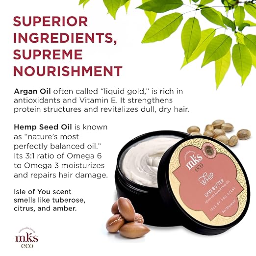 MKS eco Whip Skin Butter - 8 oz - Total Body Moisturizer - Moroccan Argan Oil, Hemp Seed Oil, Jojoba Oil, Shea Butter - Vegan & Cruelty Free
