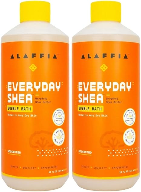 Alaffia Everyday Shea Bubble Bath, Soothing Support for Deep Relaxation and Soft Moisturized Skin, Made with Fair Trade Shea Butter, Cruelty Free, No Parabens, Vegan, Unscented, 2 Pack - 16 Fl Oz Ea