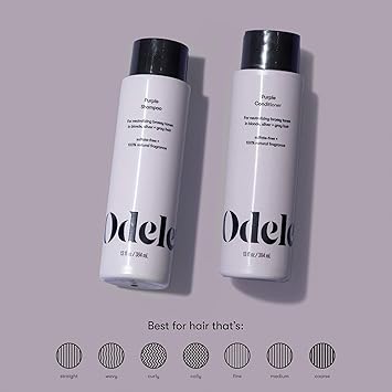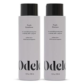 Odele Sulfate-Free Purple Shampoo & Conditioner Set for Neutralizing Brassy Tones in Blonde, Silver + Gray Hair, 13 Fl Oz Each (2-Pack)