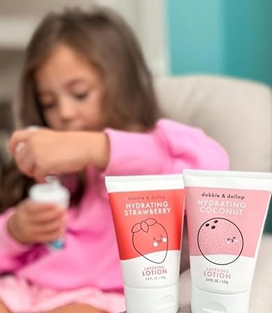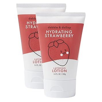 - Ripe & Ready For Bath Time - Does your little one suffer from dry skin? Dabble & Dollop Hydrating Strawberry Layering Lotion might be the perfect answer. The highest quality ingredients (to make parents happy). The best all-natural aromas (to keep kids engaged in their daily skin routines). Say goodbye to red, itchy, and scaly skin with this all-over moisturizing, creamy lotion that’s as sweet and vibrant as a Summer day!