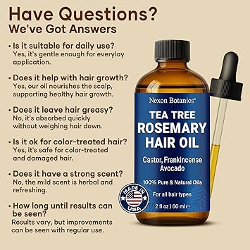 - Supports Natural Hair Growth: Powered by rosemary oil for hair growth and tea tree oil for scalp health, this blend helps reduce thinning and encourages fuller, thicker-looking hair without causing breakage.